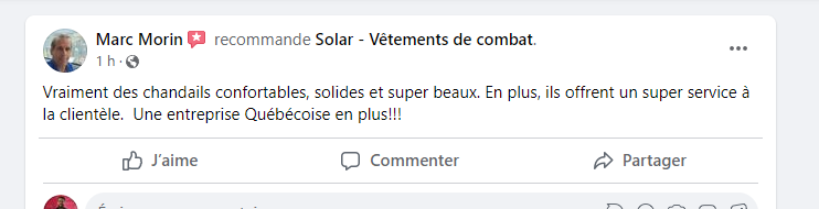 "Vraiment des chandails confortables, solides et super beaux. En plus, ils offrent un super service à la clientèle. Une entreprise Québécoise en plus!!!"